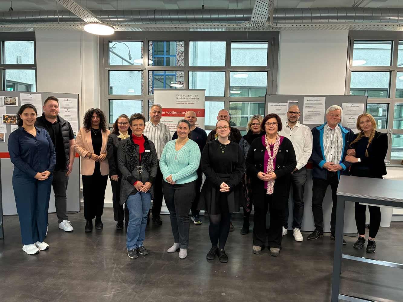 Am Freitag, 13. März 2026, hatte die KAUSA-Landesstelle NRW zum Austausch mit der Ausbildungsberatung der IHKs und HWKs eingeladen. Die Kammern sind die wichtigsten Partner, wenn es darum geht, Unternehmerinnen und Unternehmer an die duale Ausbildung heranzuführen. Wie genau läuft die duale Ausbildung ab? Welche Voraussetzungen muss ich erfüllen? In welchen Berufen darf ich ausbilden? Bei vielen dieser Fragestellungen arbeiten die Kammern und die KAUSA-Landesstelle NRW in den Arbeitsmartkregionen Bergisches Städtedreieck, Märkische Region, Mülheim-Essen-Oberhausen sowie Westfälisches Ruhrgebiet seit 2022 eng zusammen.